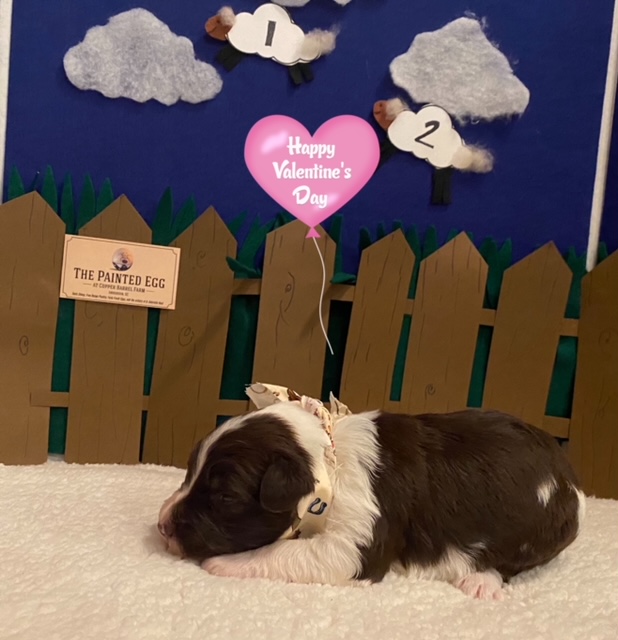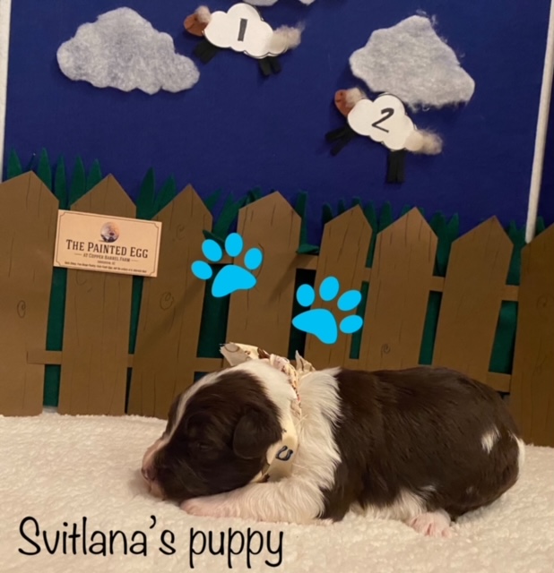The last 2 puppy pictures are for Svitlana from Florida. He's our only chocolate puppy, and a spitting image of mom. Even though he appears to be quite relaxed in the photo, he was very much the screamer of the bunch, anxious to get back in his warm space with his mom and siblings.